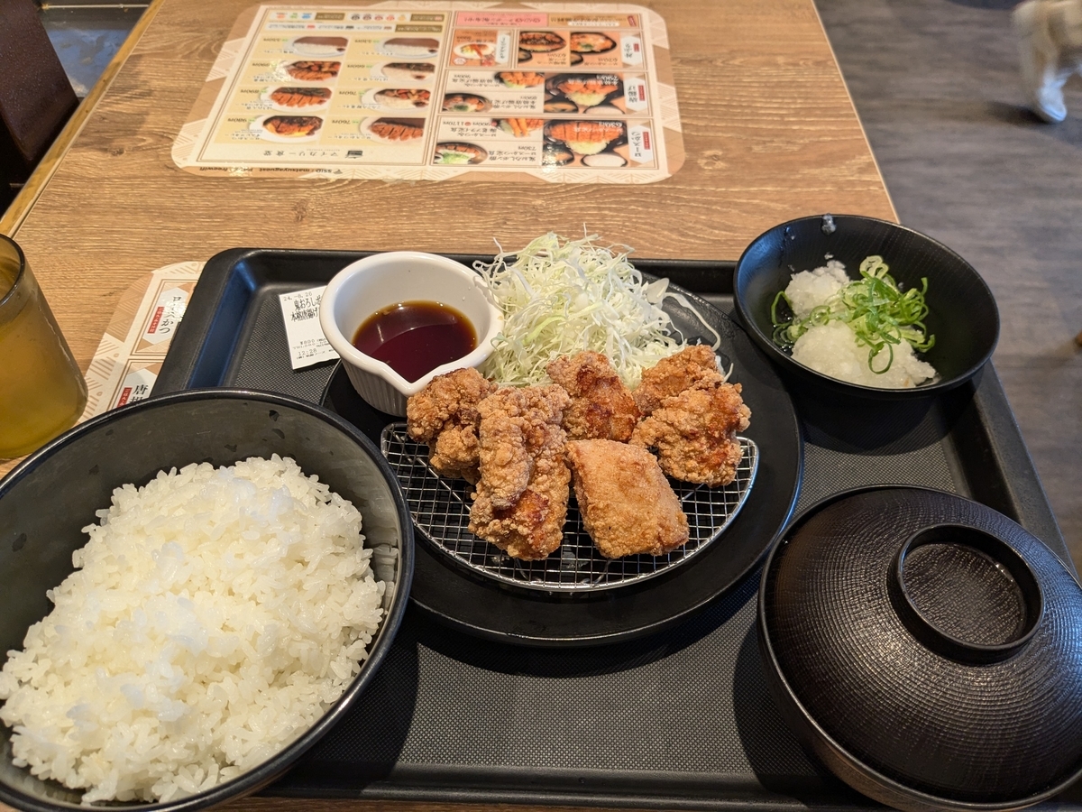 上記の記事にあるように、外食チェーンでコメ不足は起きていない。そこでランチに出た時に「松のや」で定食を食べることにした。この日ばかりはご飯を大盛りにした「鬼おろしポン酢唐揚げ定食」を注文、890円なり。